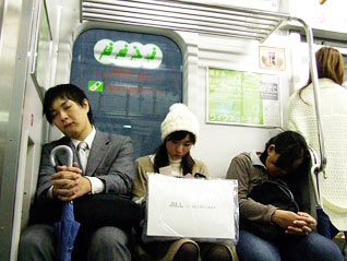 Wenn man mit dem Zug oder der S-Bahn unterwegs ist, entwickelt man das Gefühl, dass die Japaner gar kein Zuhause haben. Sobald sie in der Bahn sitzen schlafen die ein. Nach einiger Zeit haben wir das dann auch gemacht. Vielleicht liegt das ja auch an der Bahn, die ein gutes Sicherheitsgefühl vermittelt. Ein paar Ausnahmen tippen aber auch auf ihrem Handy rum. Damit können sie TV gucken, Spiele spielen, Nachrichten lesen |